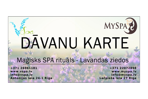 Lavandas rituāla burvība atspoguļosies Jūsu skaistumā un labsajūtā. Bagātīgā un lieliskā meistara pieredze palīdzēs atpūsties un pilnībā izbaudīt ekskluzīvo SPA procedūru lavandas aromāta laukā. Rituālā tiek izmantoti dabiskie produkti, kuru pamatā ir lavandas ziedi. Tie maģiski un dziedinoši ietekmēs Jūsu ķermeni un dvēseli, bet degošās sveces un dienvidu valstu mistiskā mūzika pastiprinās šo efektu ar gaismas un skaņas harmoniju. Tas ir SPA rituāls, kas palīdzēs Jums atpūsties no ikdienas kņadas un pacels Jūs virs ikdienas, paverot jaunus augstumus. Procedūrā ietilpst: ✓ Relaksējoša visa ķermeņa masāža ✓ Eko pīlings visam ķermenim ar lavandas skrubi ✓ Ietīšana lavandas maskā ✓ Galvas masāža ✓ Dāvaniņa no salona ✓ Karsta tēja vai kafija Paredzēta 1 personai Ilgums - 120min