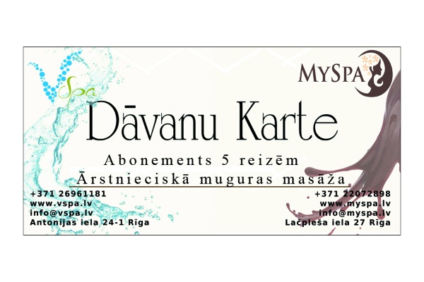 Abonements 5 apmeklējumam ārstnieciskās muguras masāžas